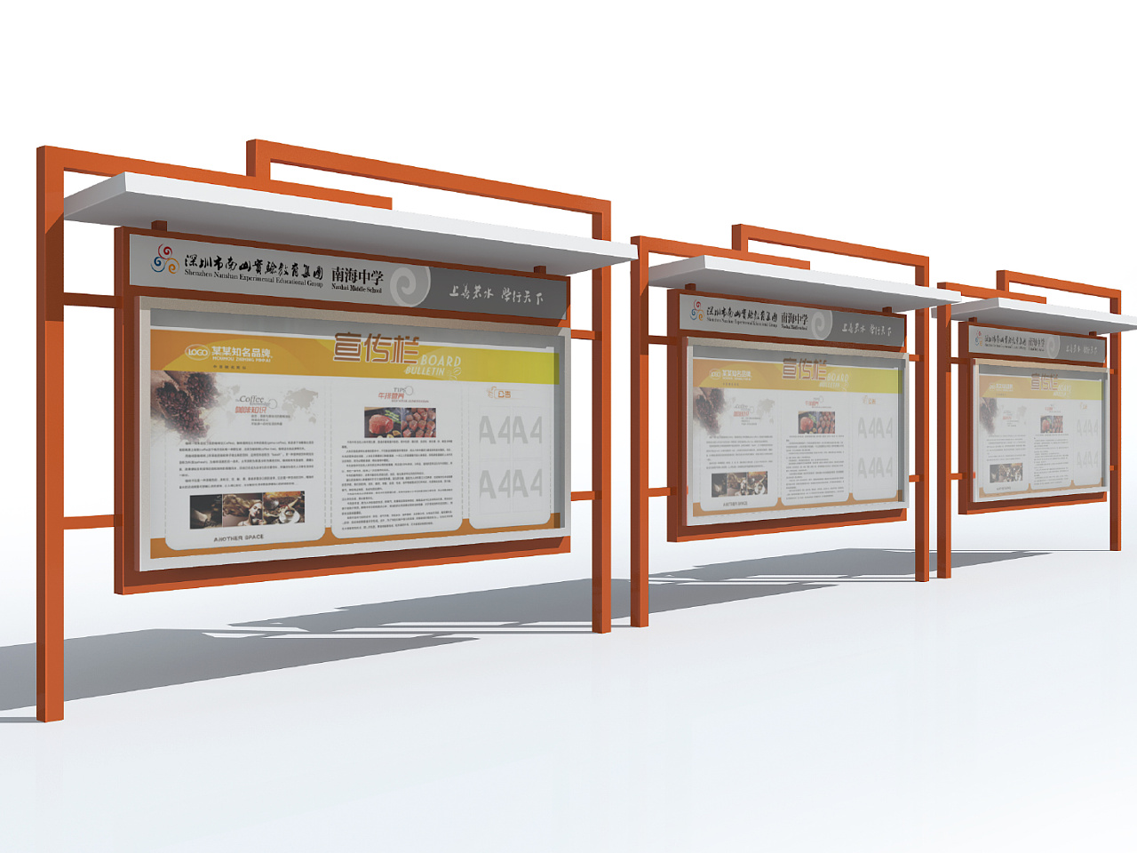 為了遮擋陽光和雨水,宣傳欄一般會有頂棚。